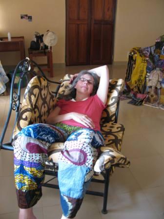 Ensuite au Centre Culturel Français (CCF) pour une petite bouchée, un arrêt à un boutiquier qui vend des pantalons Nassara à l’Africaine, une marche à la grande chaleur pour se retrouver au restaurant le Verdoyant ou nous avons mangé une très bonne pizza chacune et rentrée à la maison vers les 18h00.